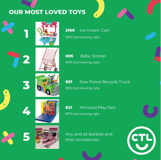 This year’s borrowing stats are in - and they’re as fun as the toys themselves! From the most-loved ride-ons to the puzzling favourites, our members have truly embraced playtime in every way imaginable. Thank you for making 2024 such a playful year. Here’s to another 12 months of fun, laughter and of course - toys!